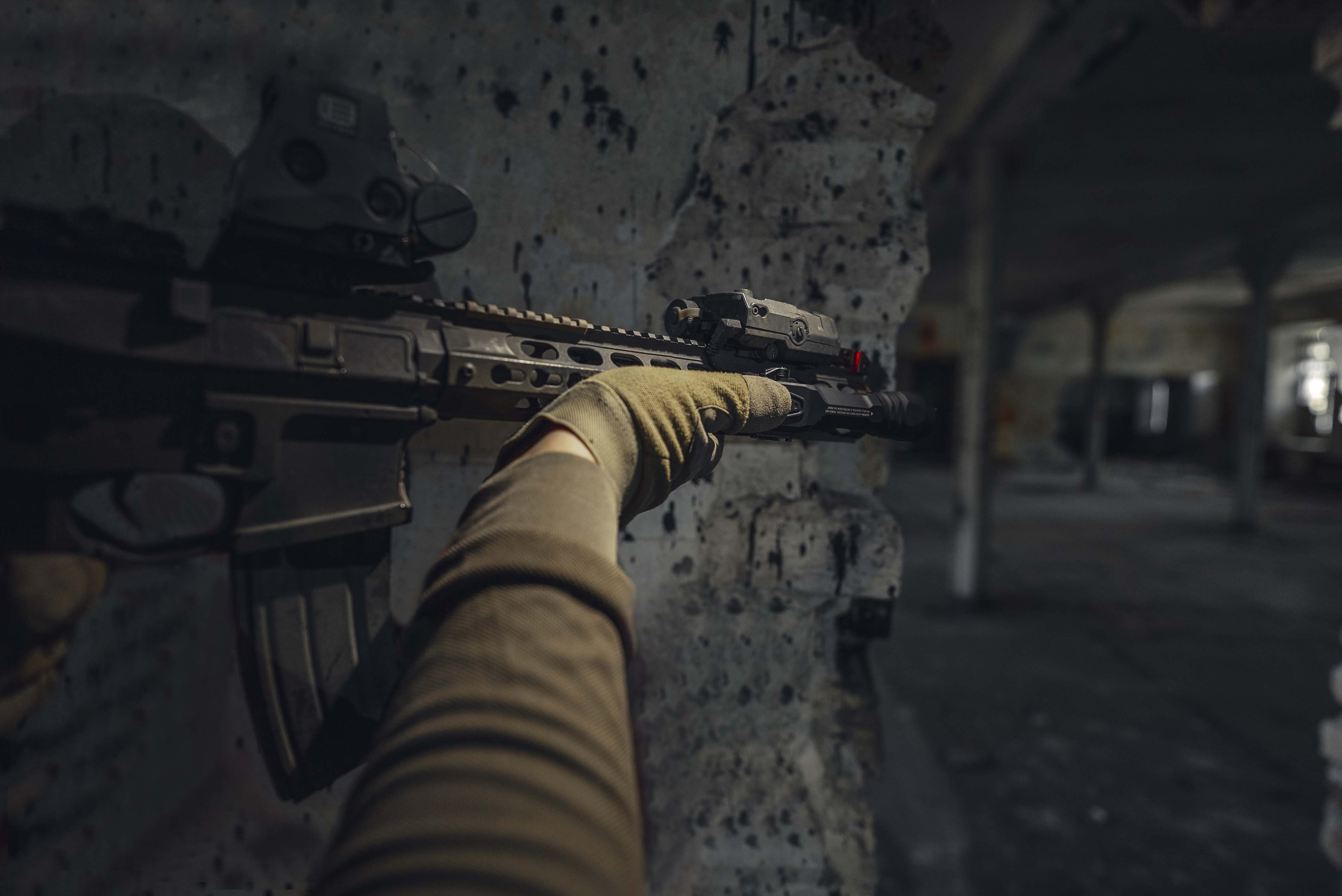 - Белый свет с яркостью 1250 люмен и дальностью до 320 метров для подсветки целей и предварительного наведения. Включает режим Стробоскоп для дезориентации противника.