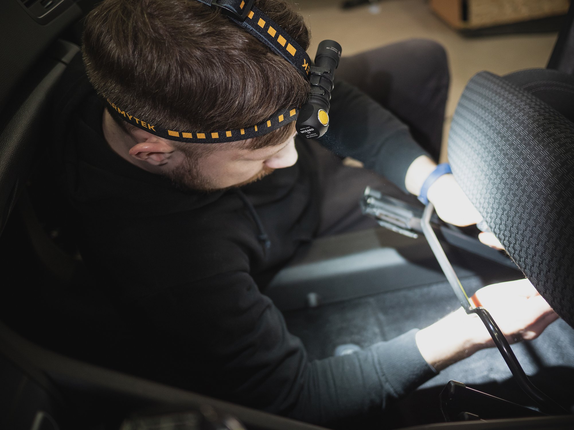 Прочное и надежное налобное крепление для мультифонаря Armytek Wizard.