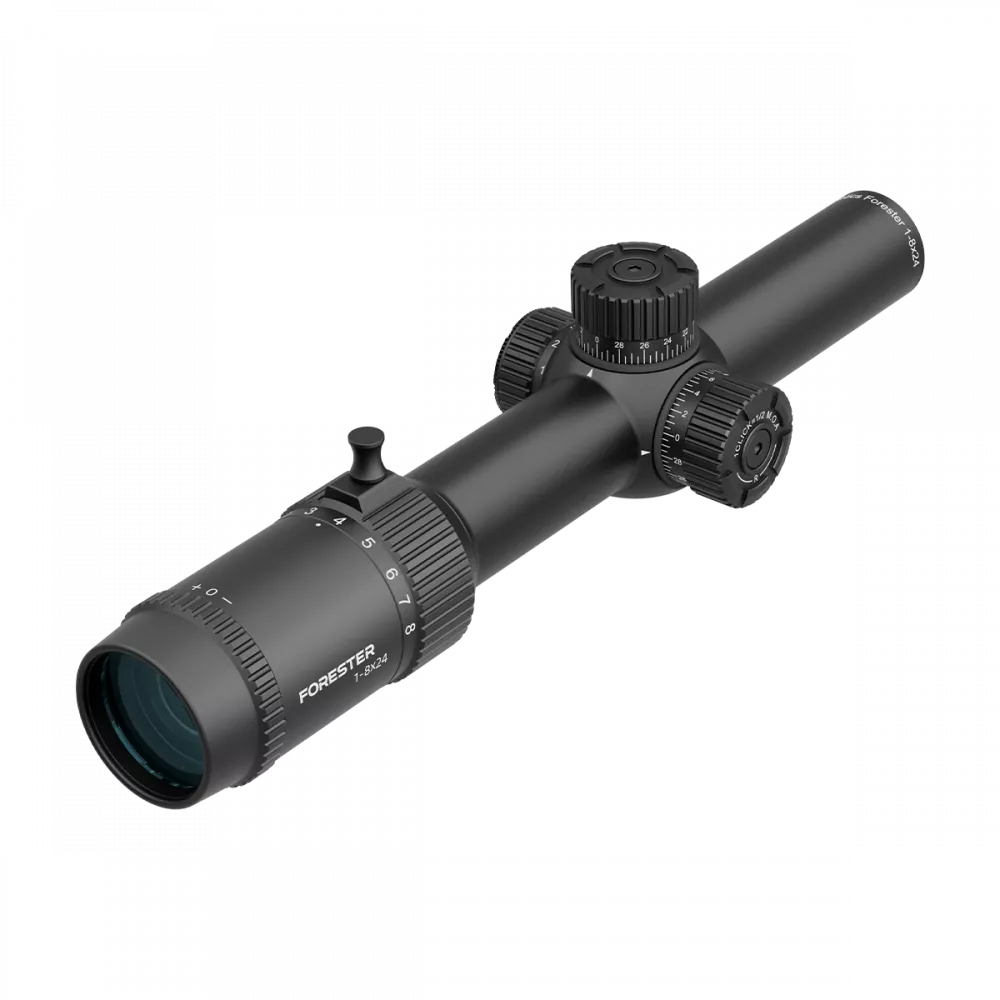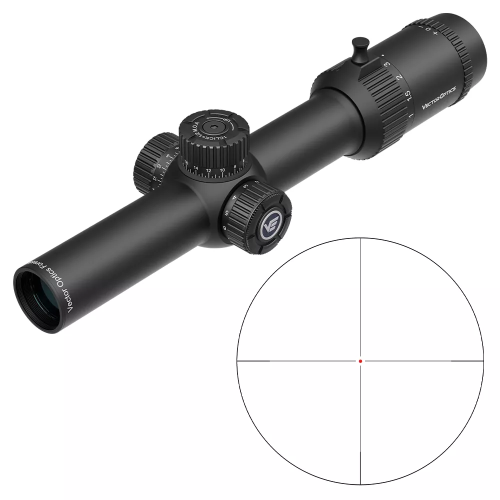 Прицел Vector Optics Forester 1-8x24 SFP предназначен для загонной охоты на ближних и средних дистанциях как по стоячим, так и по движущимся целям. Позволяет комфортно прицеливаться одним или двумя глазами, даёт отличный обзор и чистое изображение, обеспечивает быстрый поиск и лёгкое отслеживание целей в движении. Широкий переменный зум (1-8) обеспечивает плавное переключение между целями ближнего и дальнего плана, а рычажок-упор на колесе-трансфокаторе позволяет быстро и безошибочно выставить рабочее увеличение. Сетка крест с точкой — один из самых простых оптимальных вариантов для загона и стрельбы на скорость. Марка находится в фокальной плоскости окуляра (не масштабируется), нанесена методом травления по стеклу. Точка в центре подсвечивается красным (11 уровней), на максимуме подсветка яркая.