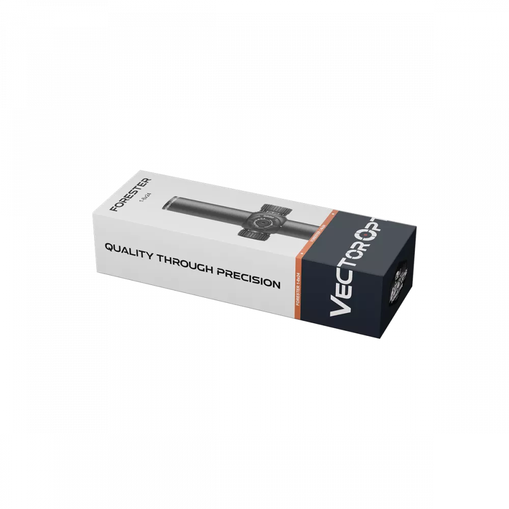 Корпус прицела-это ударопрочная, цельнолитая конструкция с диаметром трубы 30 мм с износостойким матовым покрытием. «Загонник» Vector Optics Forester 1-8x24 SFP  отлично защищён от снега и дождя, и сохраняет герметичность даже при 30-минутном погружении в воду на глубину до 1 м. Заполнение сухим азотом защищает внутреннюю оптику и механику от выпадения росы и конденсата.