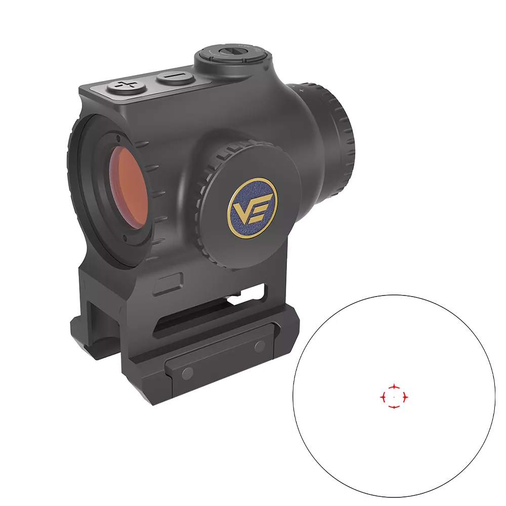 Коллиматор Vector Optics Paragon 1x18 Х-Micro SCPS-M10 — закрытый призматик для точной динамичной стрельбы на ближних дистанциях. Предназначен для установки на тактические и охотничьи винтовки с умеренной отдачей, оснащённые верхней планкой Picatinny. Система призм минимизирует размеры корпуса под короткоствольное оружие, обеспечивает широкое поле зрения и устраняет эффект «звёздного взрыва», характерный для традиционных линзовых коллиматоров. Это позволяет формировать чистое и резкое изображение прицельной сетки без нежелательных световых артефактов. Полное многослойное просветление линз улучшает светопропускание, снижает отражения и повышает яркость изображения. Широкое поле зрения 15,1° позволяет быстро ориентироваться в пространстве и корректировать прицеливание в движении. А диоптрийная регулировка в диапазоне от -2 до +2 позволяет адаптировать прицел к особенностям зрения стрелка. Сетка точка 2 MOA в круге позволяет быстро ловить цель, отслеживать завал горизонта по выступам на секторах круга и оценивать расстояние до ростовой мишени: на дистанции 91,4 м мишень высотой 1,7-1,8 м полностью впишется в круг. Метка постоянная и видна даже без подсветки. Доступно 2 цвета: красный — для стрельбы в тени или в сумерках, зелёный — для лучшей видимости днём на ярком солнце. Яркость (10 уровней, включая 2 «ночных») адаптирует свечение метки под внешнюю освещённость в любом цвете, в том числе для совместного использования с приборами ночного видения. Управление цветом и яркостью электронно-кнопочное, для питания потребуется батарейка CR2032 (покупается отдельно). Винты выверки — плоские, аккуратные, ни за что не цепляются и при этом случайно не прокручиваются; поворачиваются при помощи универсального ключа из комплекта. Клики чёткие, негромкие, но различимые настолько, чтобы вносить поправки на слух. Цена клика 1 MOA, диапазон выверки — 100 MOA. Удаление выходного зрачка 95 мм предотвращает возможность травмирования стрелка при отдаче и обеспечивает гибкость в выборе стрелковой позиции. Прицел рассчитана на лёгкие конфигурации оружия с умеренной отдачей. Самый лёгкий и компактный из прицелов Paragon Mini Prism. Протестирован на ударные нагрузки до 1000G, что гарантирует сохранность внутренних компонентов при стрельбе патронами калибра .223 Remington, .243 Winchester, .270 Winchester, .308 Winchester и .458. От пыли и осадков защищён по классу IP67, выдержит пыльный ветер, сильный дождь и кратковременно погружение в воду на глубину до 100 см. Позволяет держать голову в естественном положении и максимально поднять прицел над стволом, открывая штатные прицельные приспособления. На планке фиксируется двумя прижимными винтами с внутренним шестигранником.