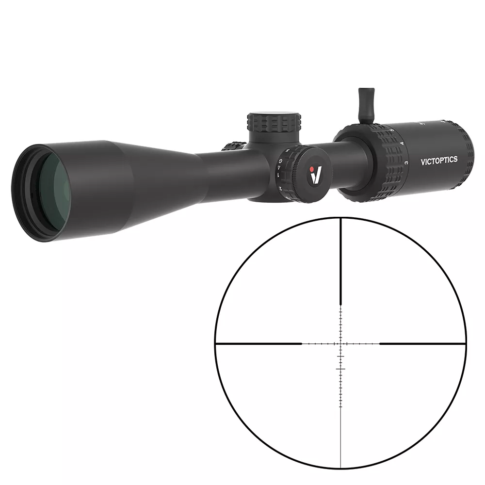 Оптический прицел VictOptics S6 1-6x24I SFP от компании Vector Optics - высококачественная модель с кратностью 1-6 и диаметром объектива 24 мм, в основном предназначенная для стрельбы на ближние дистанции и загонной охоты. Сетка - типа VIS-F1, с красной подсветкой, яркость регулируемая (6 уровней), используемый элемент питания - типа CR2032.