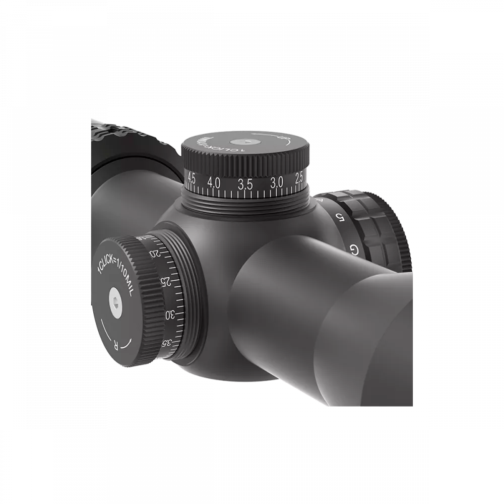 Прицел оснащен 5-уровневой подсветкой прицельной сетки в красном и зеленом цветах, что позволяет адаптироваться к различным условиям освещения и фона. Длительное удаление выходного зрачка в 100 мм обеспечивает комфортное использование и защищает стрелка от отдачи.