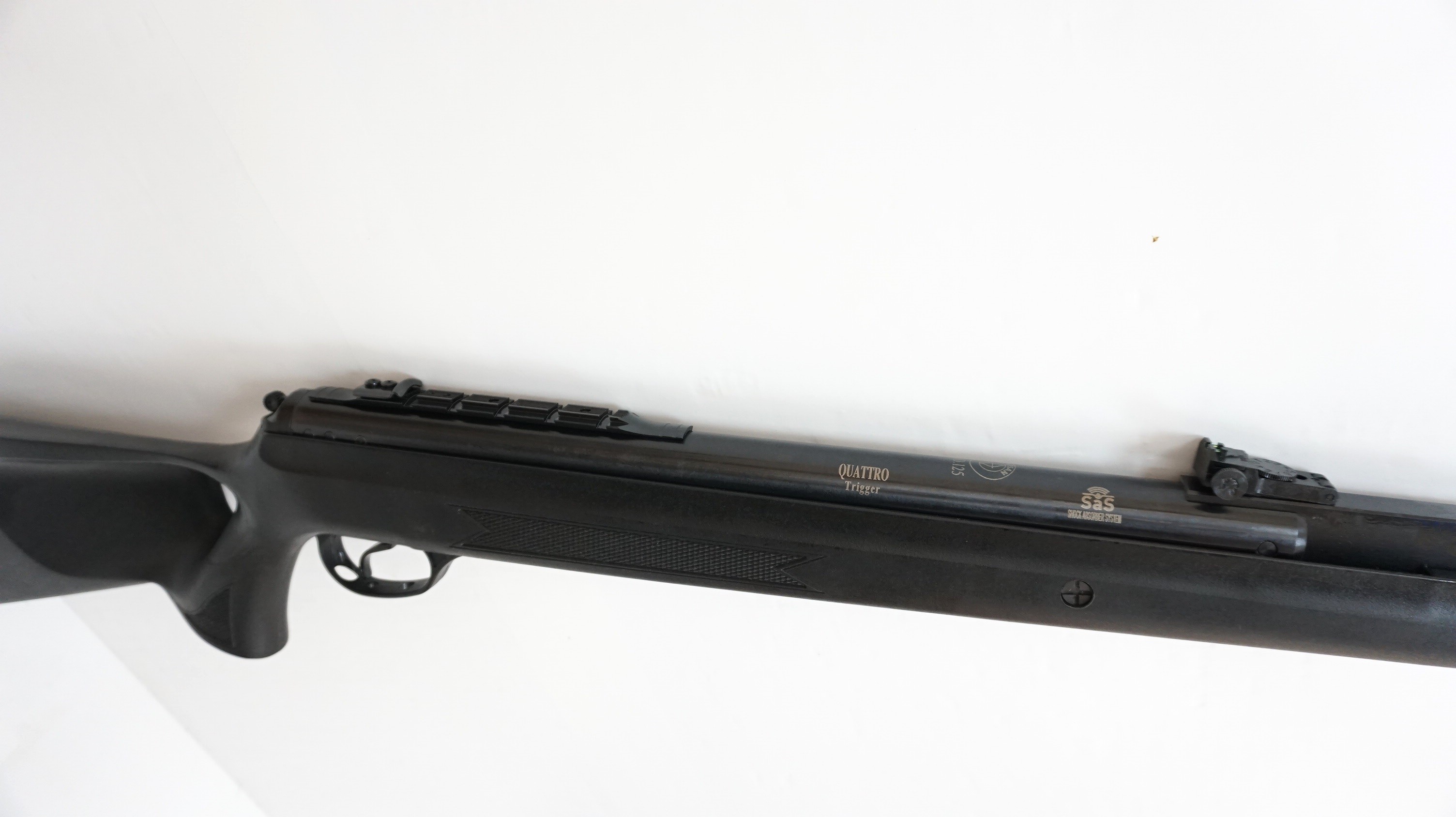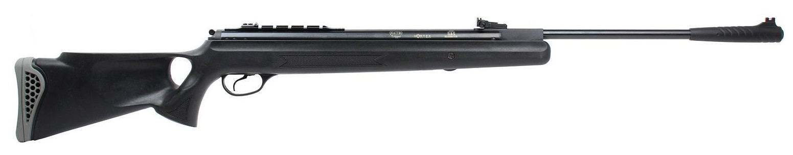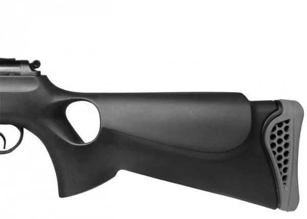 С завода данная винтовка как и все другие переломки поставляется в ослабленном виде. В качестве источника энергии она использует витую пружину, которую можно заменить на усиленную витую или на газовую пружину. Для данной винтовки оптимальным вариантом будет газовая пружина на 140 атм., для желающих "еще мощнее" можем предложить газовую пружину 170 атм. С установленным комплектом усиления винтовка сможет продемонстрировать удивительную мощь: начальная скорость пули будет составлять порядка 380 м/с.